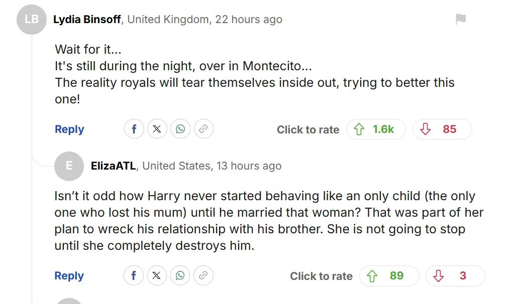 不过,英国媒体下方的评论,大家还是很偏向威廉王子的……